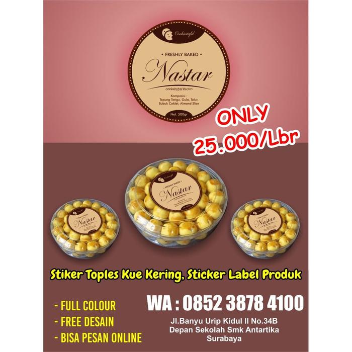 Cetak desain stiker toples kue kering lebaran shopee indonesia.
